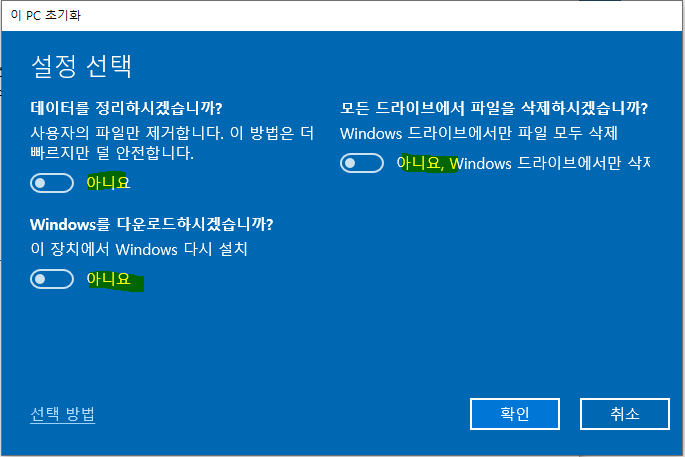 어떤걸 선택할 지는 중요한 파일을 미리 저장해 두었는지 백업 여부에 달렸다.