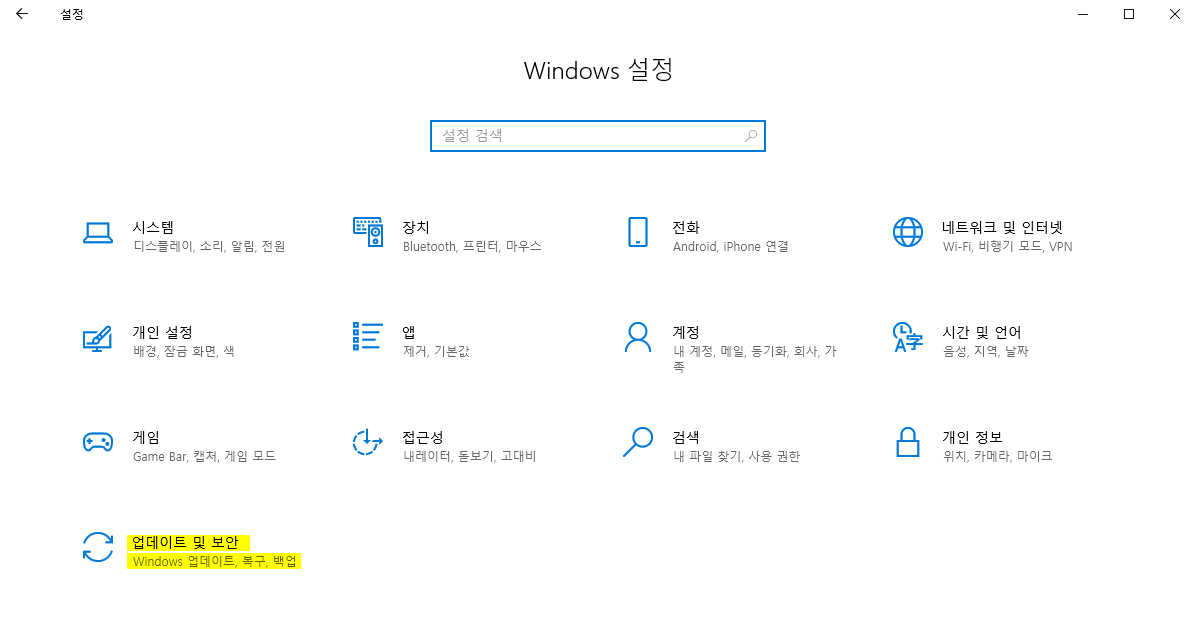 업데이트 및 보안을 누른다.