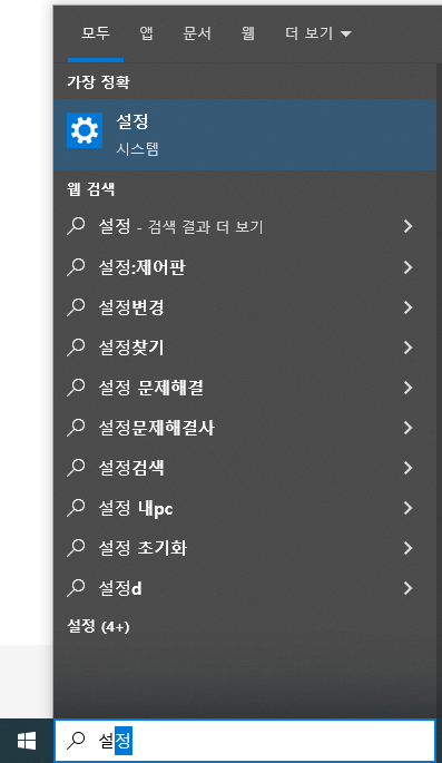 시작 버튼을 누르고 '설정'이라고 입력하자.