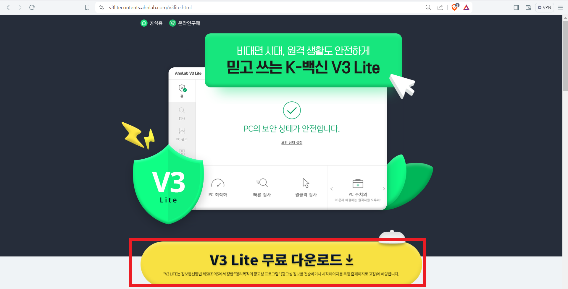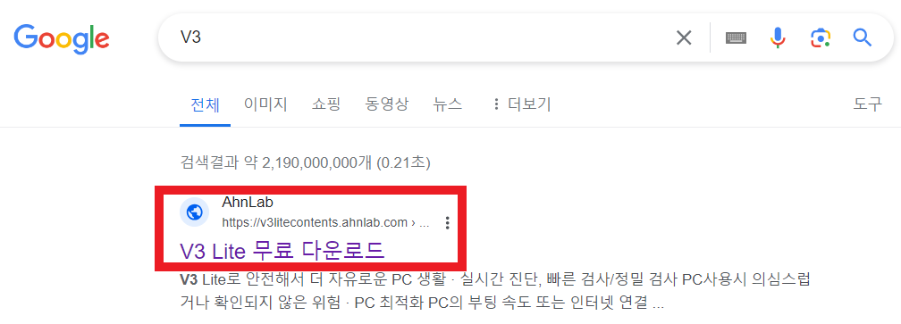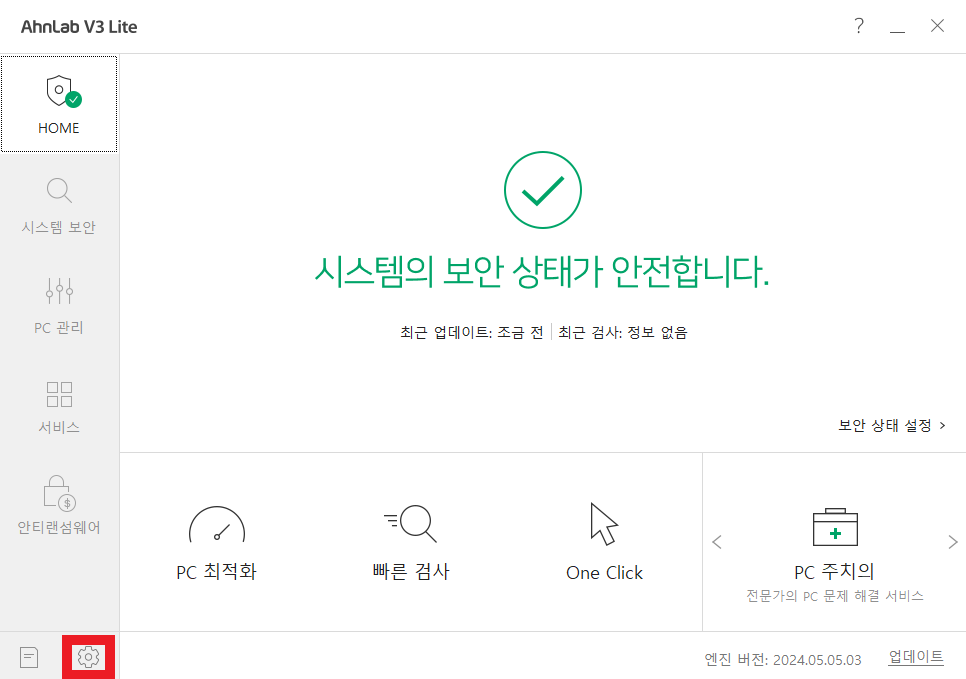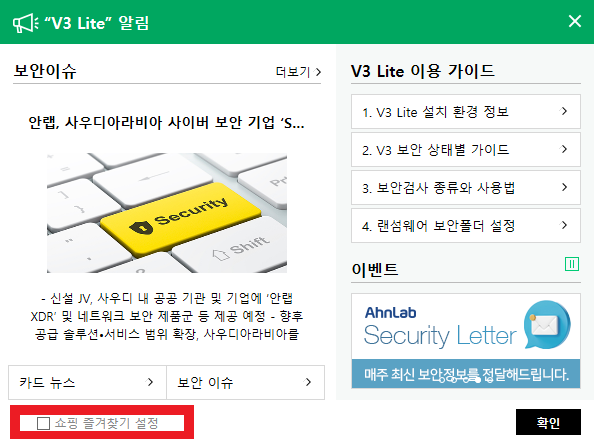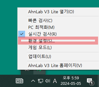 화면 오른쪽 하단에 보면 V3 Lite가 설치된 것을 확인할 수 있다.