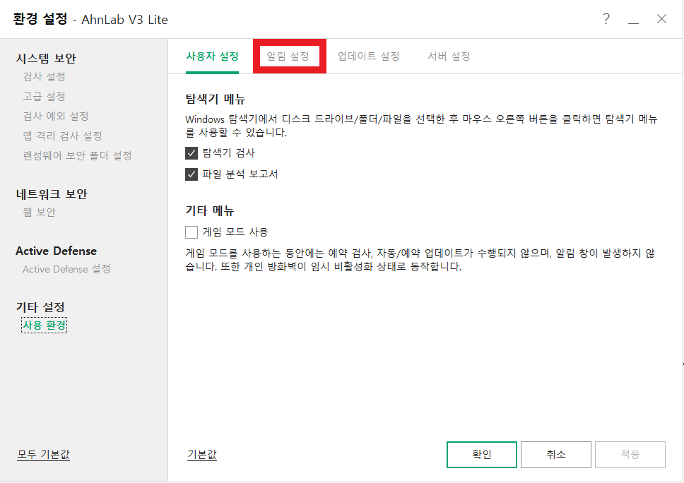 그 왼쪽의 '알림 설정'탭으로 이동한다.