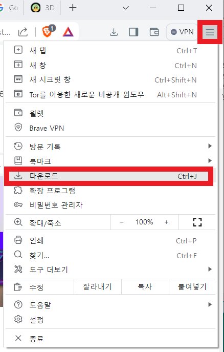 웹브라우저마다 모양이 다르지만 보통 오른쪽 상단에 보면 메뉴버튼이 있는데