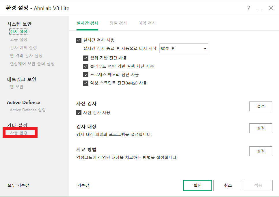 찾기 어렵다면 V3 Lite를 실행한 후